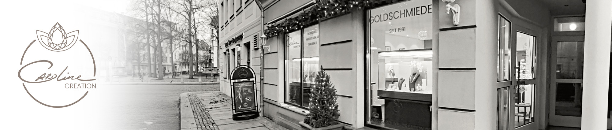1991 wurde die Goldschmiede Caroline Creation von der Goldschmiedemeisterin Carola Jakubasch gegründet. Die Goldschmiede mit Werkstatt und Ladengeschäft wurde1992 im Dresden West in der Gohliser Straße eröffnet. Die 90er Jahre waren geprägt durch die Aufbruchstimmung der Wiedervereinigung Deutschlands. Mit vollem Tatendrang und dem glücklichen Gefühl, endlich genügend Edelmetall sowie schönste Edelsteine für die Herstellung von eigenem Schmuck zur Verfügung zu haben, wurden die ersten eigenen Schmuckstücke entworfen und hergestellt. Selbstgefertigte Schmuckkreationen waren von Anfang an in unseren Auslagen zu finden. Die Ausbildung von Lehrlingen gehörte in der Meisterwerkstatt seit dieser Zeit ebenso zur Philosophie der Goldschmiede Caroline Creation. Handwerkliches Können weiter zu vermitteln, um unser traditionelles Handwerk zu erhalten und jungen Menschen einen Ausbildungsplatz zu ermöglichen, waren dafür die ausschlaggebenden Beweggründe. Die Jahrtausendwende fortlaufend „EIGENSINNIGER“ entwickelte sich der eigene Schmuckstil. Im Laufe der Jahre wurde die Goldschmiede Caroline Creation zu einer Adresse für besondere Einzelstücke in meisterlicher Handwerksqualität. Die Nachfrage individueller Kundenwünsche stieg stetig. Besondere handgefertigte Schmuckkollektionen und Trauringe prägen den Charakter der Auslagen im Geschäft. Bis 2020 hatte die Goldschmiede ihren Sitz im Dresdner Westen. Die neue Schmuckgalerie der Goldschmiede Caroline Creation wurde im September 2021 mitten im Dresdner Barockviertel in der Rähnitzgasse 24 eröffnet. Sie finden dort unser modern eingerichtetes Geschäft mit Wohlfühlcharakter und einer offenen Schauwerkstatt.